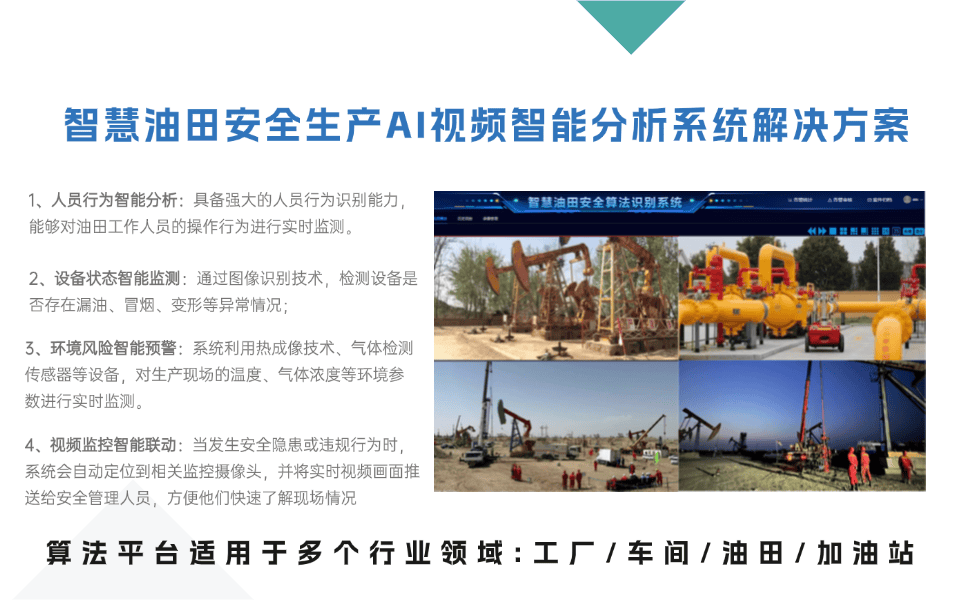 在能源行业蓬勃发展的当下,油田安全生产始终是重中之重。传统油田安全管理方式依赖人工巡检和经验判断,存在效率低、漏检率高、响应不及时等问题。